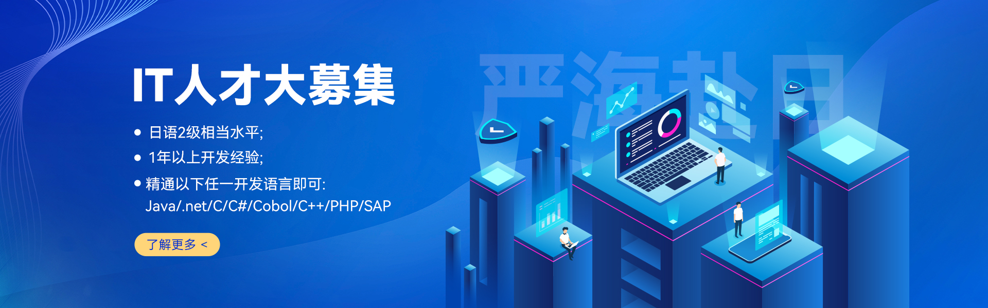 嚴(yán)海赴日(workinjapan.cn)是專業(yè)的赴日工作服務(wù)平臺,是大連嚴(yán)海人力資源有限公司旗下品牌。主要提供日本就職(工作簽)/日本留學(xué)(半工半讀),等最新工作信息和資訊,為想赴日工作的小伙伴們提供專業(yè)的、一對一的咨詢,為您職業(yè)生涯規(guī)劃、永居辦理、在日期間換職、轉(zhuǎn)換簽證等方面提供支援。